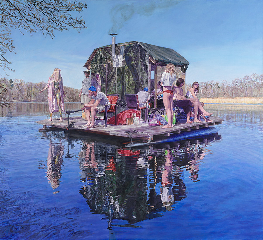 Sauna auf dem Wasser – eine Berliner Gesellschaft auf dem Land während des Lockdowns (auch Arche Corona genannt)