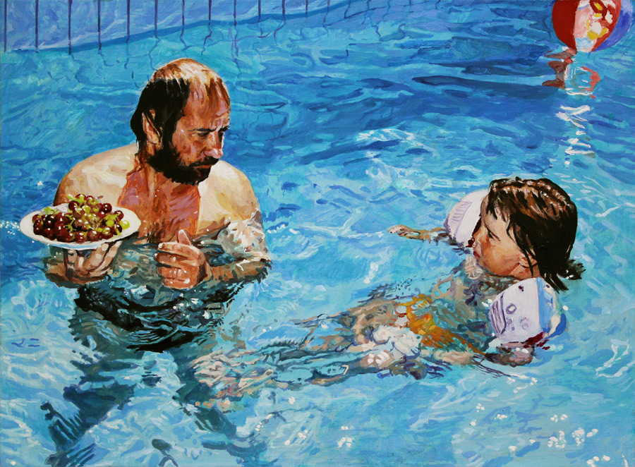 Vater und Tochter im Swimmingpool